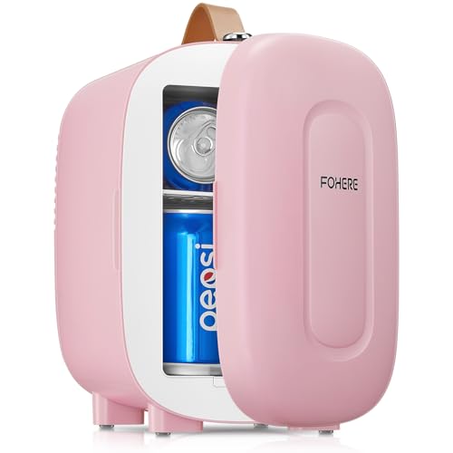 FOHERE Minikylskåp, 5-liters minikylskåp för kosmetika, drycker, extra USB-strömförsörjning, 220V AC/12V DC, litet kylskåp för sovrum, kontor, studentboende, bil (rosa)