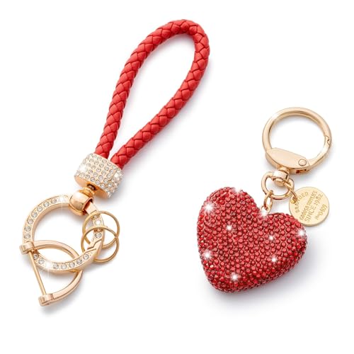 CHUQING Hjärta nyckelring partner bil nyckelring paljetter strass nyckelring par gåva, alla hjärtans dag, jul, röd, Färg: röd, M