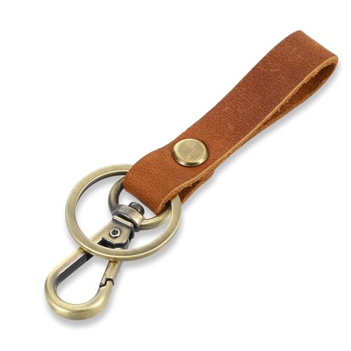 MBAIYO Nyckelring läder, nyckelring äkta läder med metallnyckelring enkel läderrem nyckelring bärbar nyckelring bil med läderrem för män och kvinnor, BRUN, 11 cm