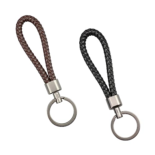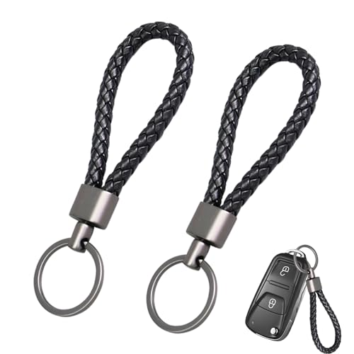 2 st Flätad Läder Nyckelring, Läder Bil Nyckelring Nyckelring För Män Kvinnor För Bil Motorcykel Cykel Hemnyckelring (svart)