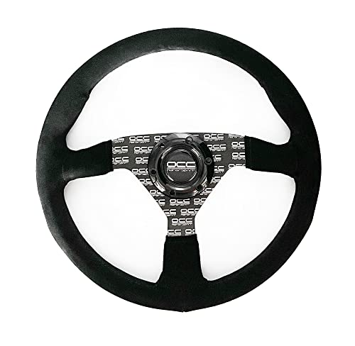 OCC Motorsport platt golvratt bil klassisk modell Alcantara sidenbild tryckt svart arm – bil platt spegel – ratt – 350 mm (14 tum)