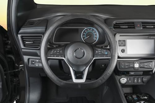 Carodi Kolfiber läder bil ratt skydd, bekväm och halkfri, universell 15 tum (svart)