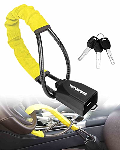Tevlaphee Rattklo, rattlås för bil, stöldskydd från ratt till bältesuttag, slitstark, universell passform, 3 nycklar (gul)
