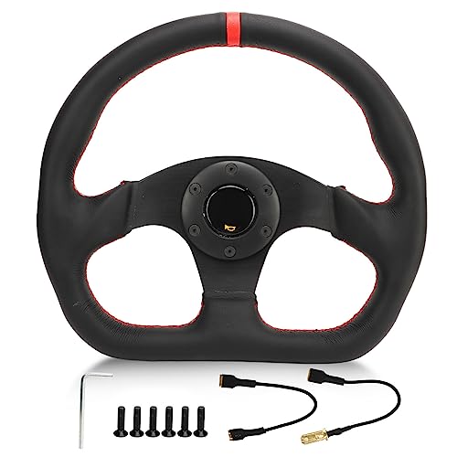 Sholer D-format rattskydd, universellt 15 tums bil/bil/SUV svart läder rattmuff med bättre sportgrepp för män kvinnor, passform D-formad platt botten ratt