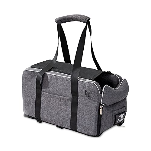 Ergocar Hundbilstol, sittupphöjning för små hundar och katter som väger under 6 kg axelband avtagbar bärbar bil hundkorg husdjur bil resesäng grå, rem och skydd