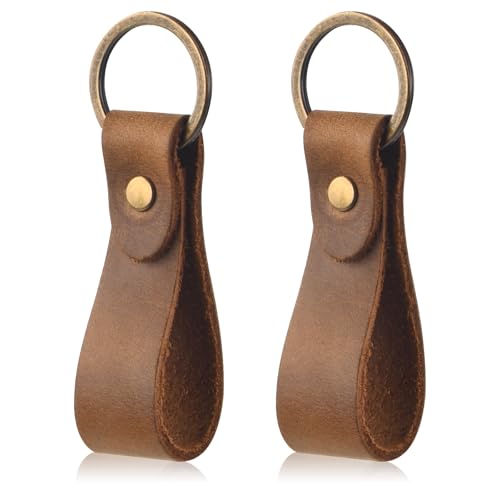 Dokeno Högkvalitativ Kohud Nyckelring - 2 st Läder Rem med Metallspänne, Äkta Läder Bil Nyckelring för Män Kvinnor, Brun, 6×2 cm