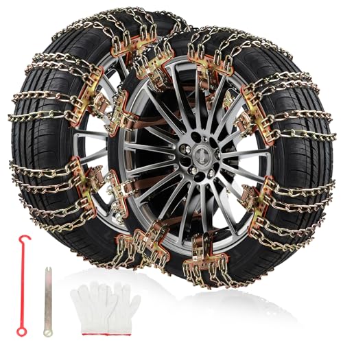DBREAKS snökedjor, 8 stycken däckkedjor, universella 215–285 mm bil nödfallssnödäckskedjor, snökedjor bilar, bilkedja, säkerhetskedjor, starthjälp snökedjor för de flesta SUV&lastbilar (gul)
