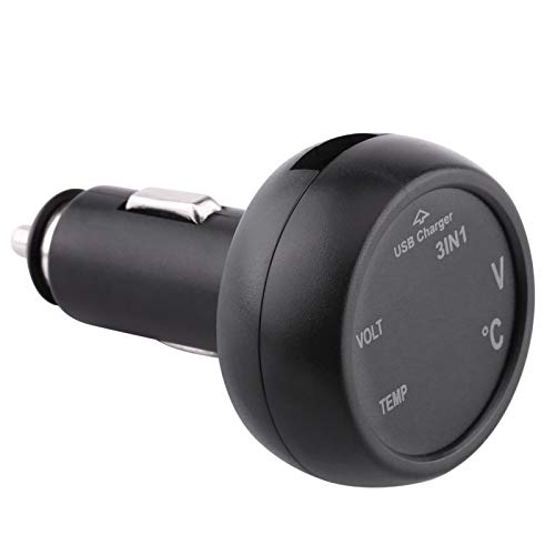 EBTOOLS 3 i 1 USB Billaddare Voltmeter Adapter Bil Lastbil 3in1 Dubbel LED Digital Display Voltmeter Termometer Cigarettändare USB Billaddare 12-24V(Grön+röd)
