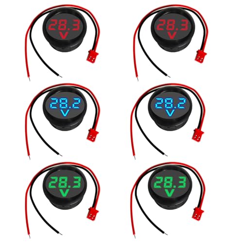 GTIWUNG 6 stycken digital voltmeter DC 4–100 V, kabelspänningsmätare 3-dimension LED-skärm, spänningsdisplay för bil/motorcykel/lastbil/båt (röd och blå och grön)