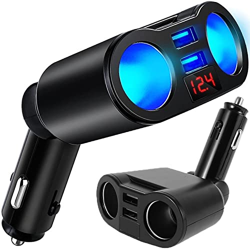 Retoo Cigarettändarfördelare med 2 flera uttag, voltmeter och 2 USB, 12 V/24 V, 3,1 A Quick Charge, billaddare, anslutningar för mobiltelefon surfplatta GPS Dash Cam, biladapter splitter
