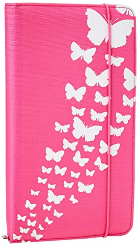 Hama CD väska Up to Fashion (för 48 skivor, CD/DV/Blu-ray/ljudböcker, mapp för förvaring, platsbesparande för bil och hem, med fjärilsmotiv) rosa