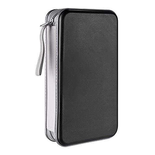 LIOVODE DVD-fodral, 96 kapacitet CD-fodral hållare förvaring organisatör hård plast skyddande skiva plånbok för bil (96 kapacitet, svart 96)