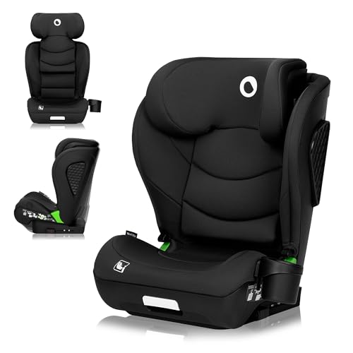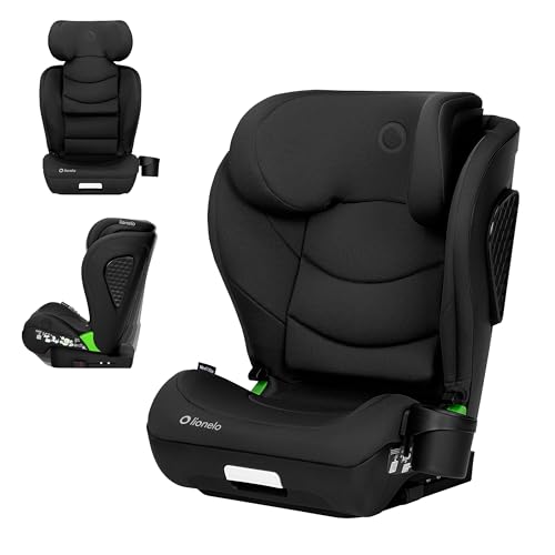LIONELO Neal i-Size Bilbarnstol 100–150 cm (ca 4–12 År) – ISOFIX & Bilbälte, R129, Extra Sidokrockskydd, 10-Stegs Justerbart Nackstöd, 4 Lutningslägen, Bred Bekväm Sits med Mugghållare – Svart
