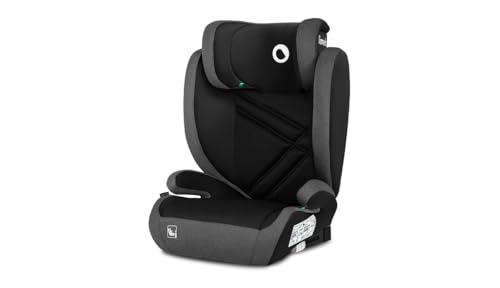 LIONELO Hugo i-Size Bilbarnstol 100–150 cm (ca 4–12 år) | ISOFIX + Bilbälte | Sidokrockskydd | 8-stegs Justerbart Nackstöd | Bred och Bekväm Sits | Växer med Barnet | Avtagbar Klädsel | Svart/Grå