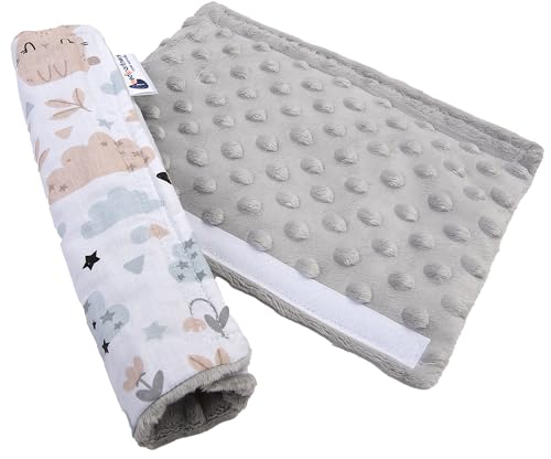 Medi Partners Bälteskudde barn bilbälte stoppning bältesskydd för bil – 17 x 22 cm 100% bomull minky axelskydd barn bälte skydd säkerhetsbälte (grå minky)