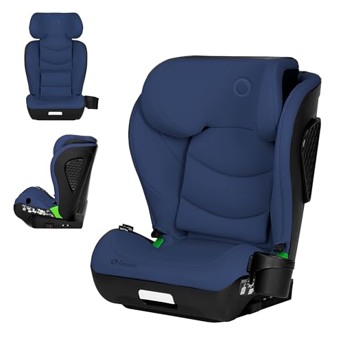 LIONELO Neal i-Size Bilbarnstol 100–150 cm (ca 4–12 År) – ISOFIX & Bilbälte, R129, Extra Sidokrockskydd, 10-Stegs Justerbart Nackstöd, 4 Lutningslägen, Bred Bekväm Sits med Mugghållare – Marinblå
