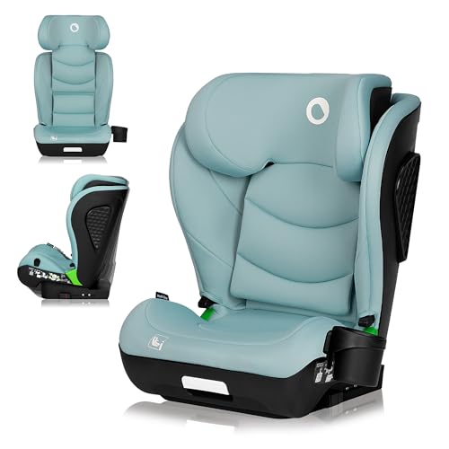 LIONELO Neal i-Size Bilbarnstol 100–150 cm (ca 4–12 År) – ISOFIX & Bilbälte, R129, Extra Sidokrockskydd, 10-Stegs Justerbart Nackstöd, 4 Lutningslägen, Bred Bekväm Sits med Mugghållare – Turkos