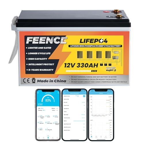 FEENCE 330ah Lifepo4-batteri, 12 V 330 Ah litiumbatteri med 200 A BMS, 4224 Wh Deep Cycle Litium bilbatteri, 15 000 cykler, perfekt för husbil, solsläp, båt och campingapplikationer