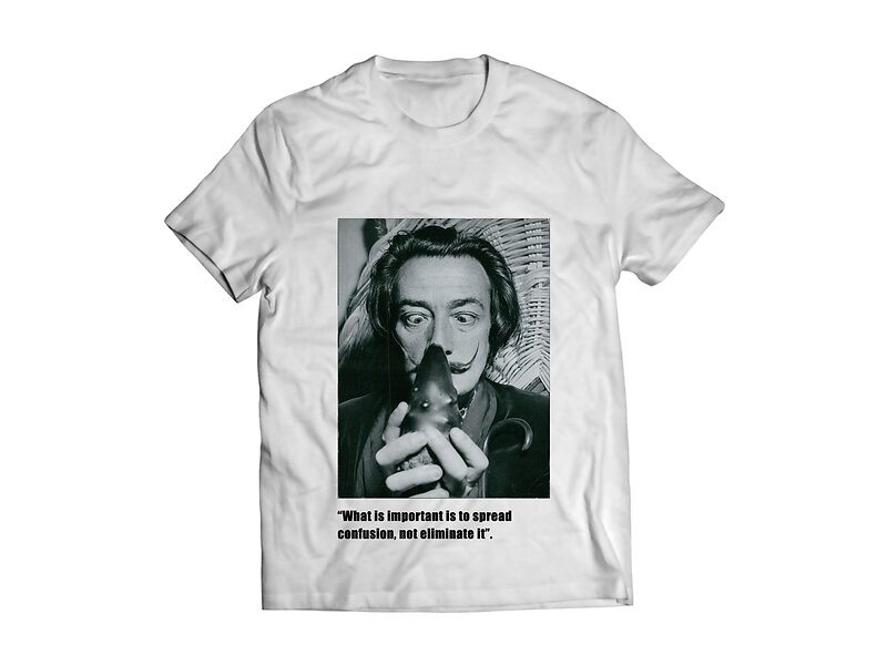 Fotomax T-shirt med bild och citat av Salvador Dali "What is important is to spread confusion not eliminate it"