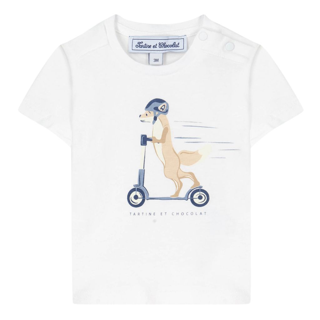 Tartine et Chocolat T-shirt i Vitt med räv på scooter 1 Y Vit 1 år man