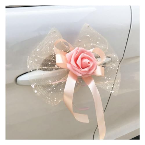 Rockreyoa 8 stycken bröllop bildekoration med rosor bilslingor spetsar bilsmycken brudpar antennslingor bröllopsdekoration för fest festival antennslingor bröllopssmycken champagne