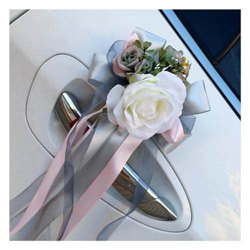 Rockreyoa 4 stycken bröllop bilsmycken konstgjord blomma bilslingor backspegel blomstersmycken rosdekoration för bröllopsfest kyrka bröllop bildekoration fest gåva grå
