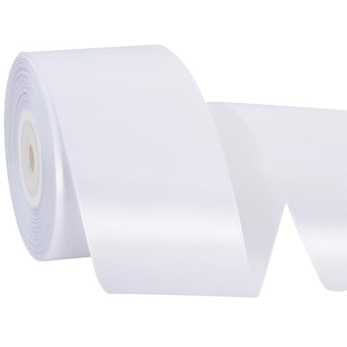 TONIFUL 5 cm x 25 meter brett vitt satinband, solida tygband, rulle för hantverk, stol, skärp alla hjärtans dag, presentförpackning, inbjudningskort, blommiga rosetter, fest, bröllop, bildekoration