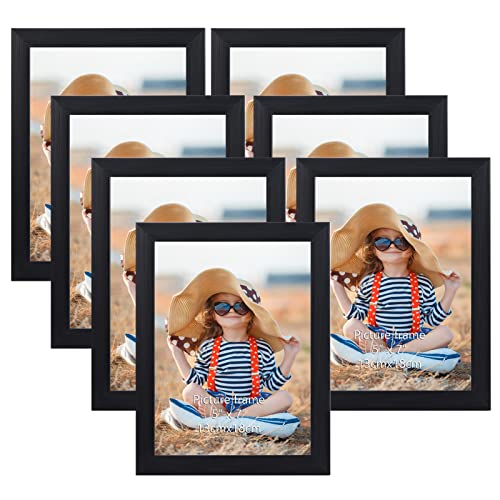 EXYGLO Uppsättning av 7 bildramar 13 x 18 cm, svart fotoram collage för 18 x 13 cm foton och bilder, mörk ram lätt och tunn – vägg- eller bordsstativ