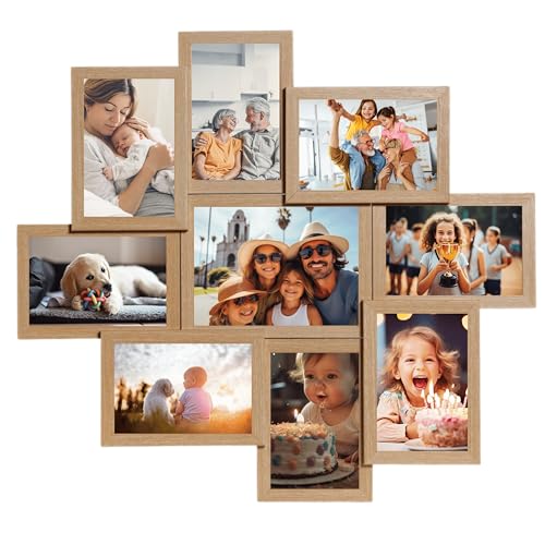 Victor Beige trä collage fotoram med 9 bilder (8 x 10 x 15 cm; 1 x 13 x 18 cm) - träkollage fotoram