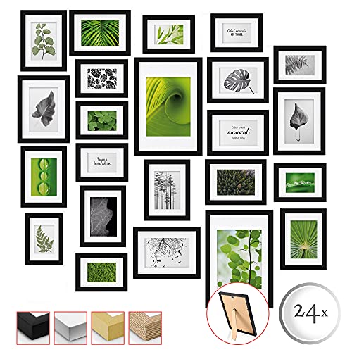 bomoe Set Fotoramar 24 delar – Kollageram för Gallerivägg – Flerbildsram Trä & Plastruta - 10x 10x 10,5x15cm / 8x 13x18cm / 4x 15x20cm / 2x 20x30cm – Ram för Bilder Svart – Nature