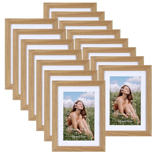 Vasemouh Naturligt träfärgad bildram set om 15, för 10 x 15 bilder med passepartout eller för bilder 13 x 18 utan montering, vägg- och bordsvisning