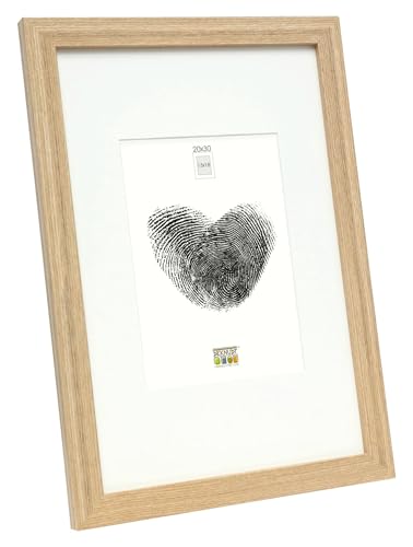 Deknudt Frames bildram med passepartout – natur träfärg – S66KH1 P1 20 x 30 cm för bild 13 x 18 cm – bildram trä MDF – hänga eller visa bilder