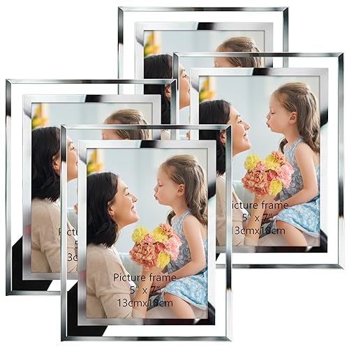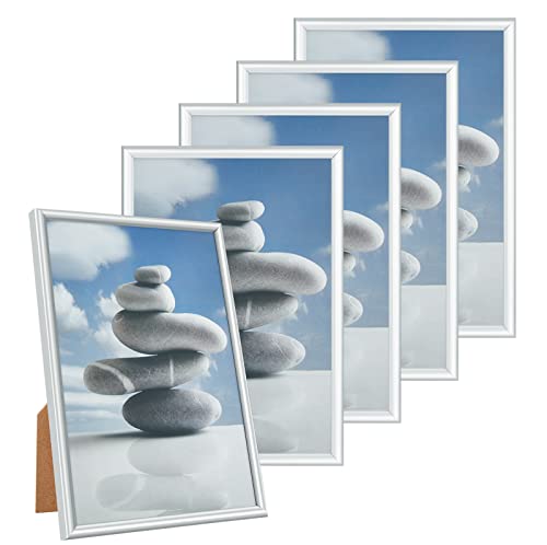 Alishomtll bildram set om 5, 13 x 18 cm, fotoram med HD-akrylglas bildram för hängning/montering fotogalleri display plastram set för flera bilder foton, silver