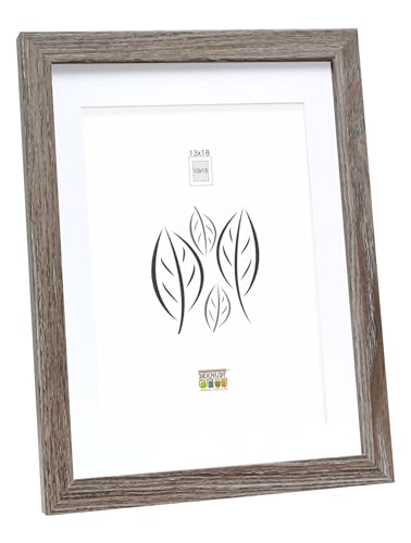 Deknudt Frames bildram med passepartout – grå träfärg – S66KH3 P1 13 x 18 cm för bild 10 x 15 cm – bildram trä MDF – hänga eller visa bilder