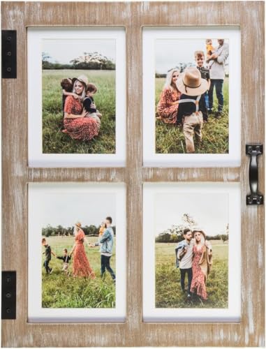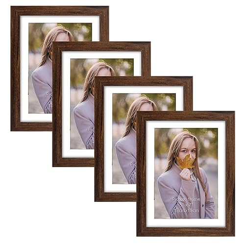 EXYGLO Set om 4 bildramar 13 x 18 cm, brun rustik fotoram för 18 x 13 foton med passepartout eller 15 x 20 bilder utan passepartouter, vägg- eller bordsstativ