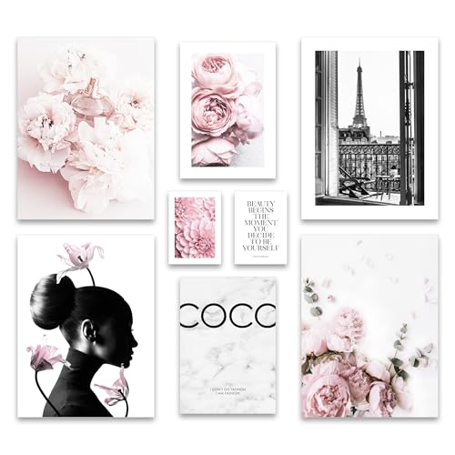 ARTFAVES Affischset – Coco | Dekorativ Rosa | 8 Moderna Väggbilder Premium Mix | 30 x 40 – 21 x 30 – 13 x 18 cm | Bilder Vardagsrum Sovrum | Utan ram