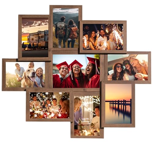 Victor Fotoram i brunt trä collage med 9 bilder (8 x 10 x 15 cm; 1 x 13 x 18 cm) | set väggbilder | för 9 bilder
