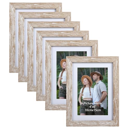 EYMPEU bildram 10 x 15 cm set om 6 st, lämplig för 10 x 15 bilder med passepartout eller 13 x 18 utan montering, för vägg och bord, beige