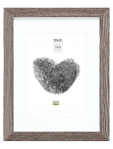 Deknudt Frames bildram med passepartout – grå träfärg – S66KH3 P1 20 x 30 cm för bild 13 x 18 cm – bildram trä MDF – hänga eller visa bilder