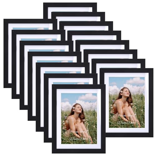 Vasemouh Svart bildram 15 set, för 13 x 18 bilder med passepartout eller för bilder 15 x 20 utan passepartout, vägg- och bordsuppställning, Mdf