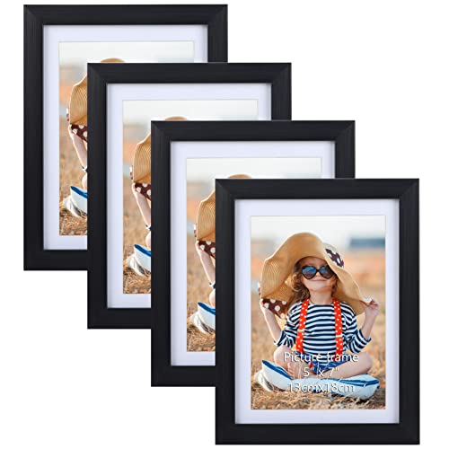 EXYGLO Set om 4 bildramar 10 x 15 cm, svart bildram för 15 x 10 foton med passepartouts eller 13 x 18 bilder utan passepartouter, vägg- eller bordsstativ