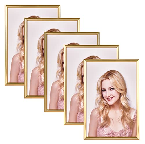Alishomtll bildram set om 5, 13 x 18 cm, fotoram med HD-akrylglas bildram för hängning/montering fotogalleri display plastram set för flera bilder foton, guld