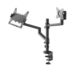 AVLT Laptop- och skärmstativ – montera 15,6 tums anteckningsbok och 32 tums skärm på 2 justerbara armar i full rörelse – organisera din arbetsyta med ergonomiskt VESA-bildskärmsfäste