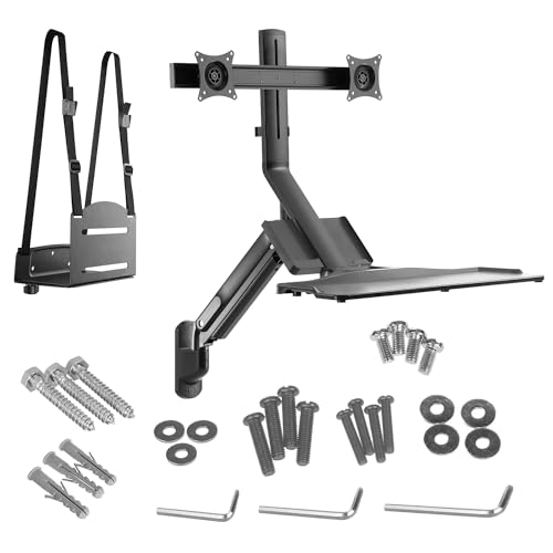 Maclean MC-633 3in1 Sitt-Stå Arbetsstation: 2x Bildskärmsfäste Väggfäste Med Tangentbordshylla Och Datorfäste Väggfäste 17-32 Tums Gasfjäder