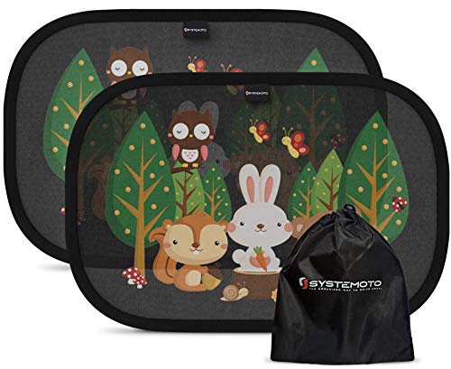 Systemoto bil solskydd baby med UV-skydd (set om 2), bilfönster solskydd för barn med söta djurmotiv (Forest Animals)