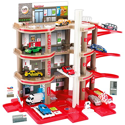 STARLUX 401006 Super Garage Stationsservice Autentiskt litet bilgarage med komplett bensinstation 4 nivåer, röd grå svart, 12 x 37,7 x 42,5 cm