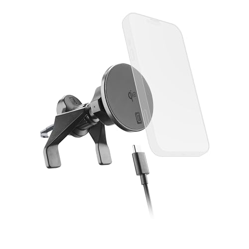 cellularline MAG Qi2 Wireless-hållare, bilhållare med 15 W magnetisk laddning, MagSafe- och Qi2-kompatibel, installation av sugkopp eller munstycke, inklusive Mag ring, USB-kabel och dima