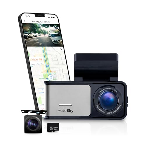 AUTOSKY 4K dubbel bilkamera med GPS och WLAN – frontkamera 4K Ultra HD, backkamera 1080P, 140° vidvinkel, G-sensor, loop- och tidlapse inspelning, mörkerseende, rörelsedetektering