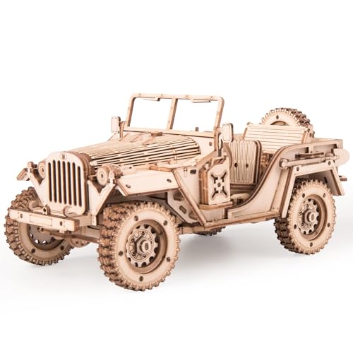 ROWOOD 3D-träpussel jeep modellsats för vuxna och tonåringar att bygga, gör-det-själv bilmodell byggnad trähantverk byggsats, idealisk jul- och födelsedagspresent