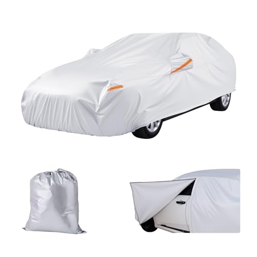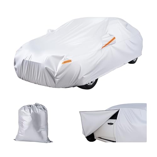 VEVOR Bilskydd, bilöverdrag vattentätt för medelstorlek europeiska sedan bilmodeller, anpassad passform alla väder sol regn vinddamm snöskydd, fullständiga yttre skydd med dörr dragkedja och
